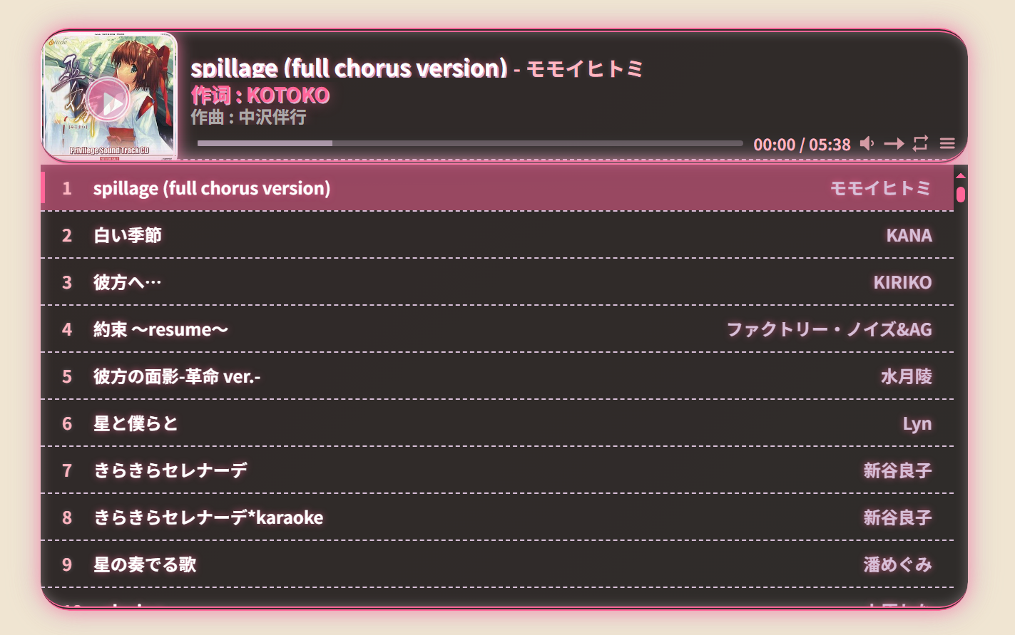 :root { --primary-pink: #FF6699; --secondary-purple: #D8BFD8; --light-pink: #FFB6C1; --glow-pink: rgba(255, 102, 153, 0.7); --glow-purple: rgba(216, 191, 216, 0.3); --glow-blue: rgba(176, 224, 230, 0.3); --inner-glow: rgba(255, 235, 245, 0.3); --border-radius: 20px; --border-radius-mobile: 25px; --player-height: 90px; --list-max-height: 310px; --list-max-height-mobile: 210px; }